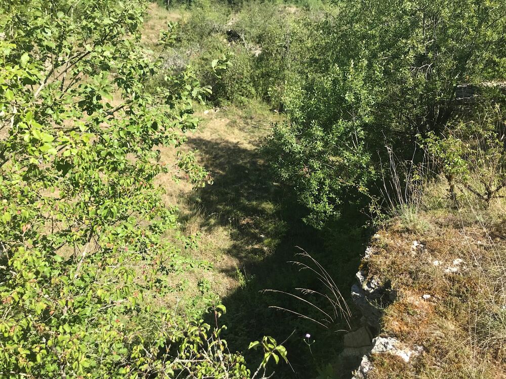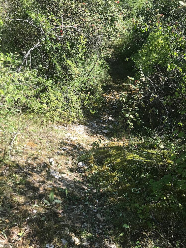 Suivre le parcours fléché rouge jusqu’à la ligne électrique. Le quitter prendre un petit sentier 20m plus bas que la ligne Haute tension.