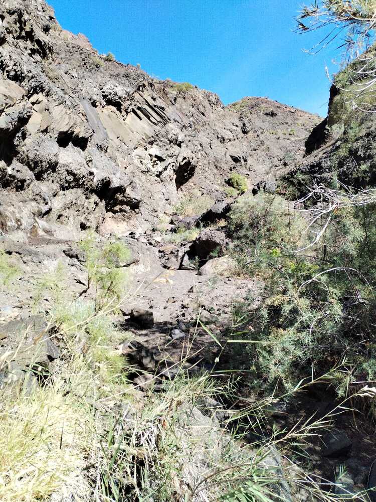 La remontée vers Alogera se fait par le baranco de droite, pas facile à retrouver.
