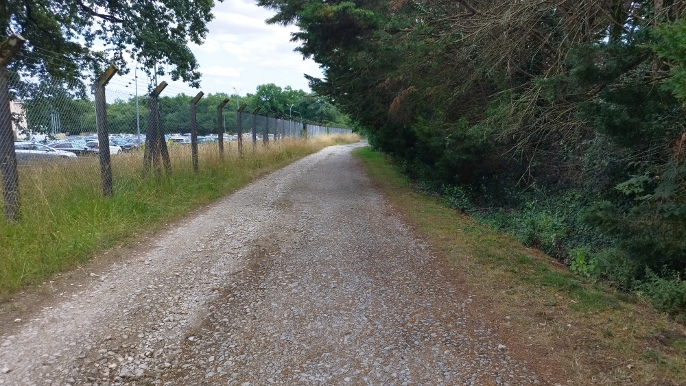 Franchir les quatre voies sur un pont, puis traverser l'ancienne RN 141 (Rue Claude Bonnier) et longer la casse sur l’allée des Forestiers. Avant d'arriver dans la forêt prendre à droite la rue du Postillon jusqu’aux Rassats.
