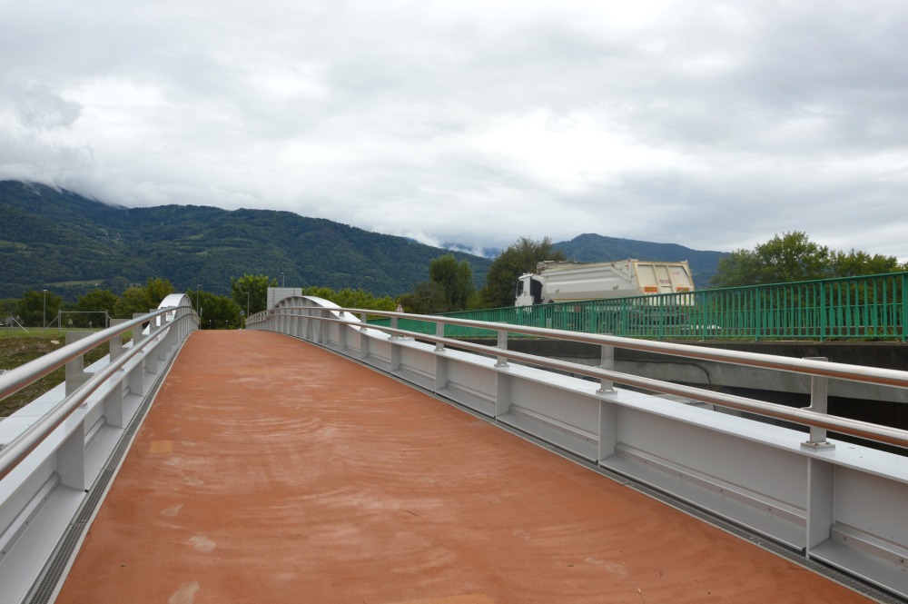 Découverte de la ligne Chronovélo 1 via Meylan et Montbonnot. Passage par la nouvelle passerelle au-dessus de l’A41 à La Bâtie. Halte au Bois de la Bâtie (ou Bois Français) Espace Naturel Sensible (ENS). Retour par la Belle Via sur les berges de l’Isère.